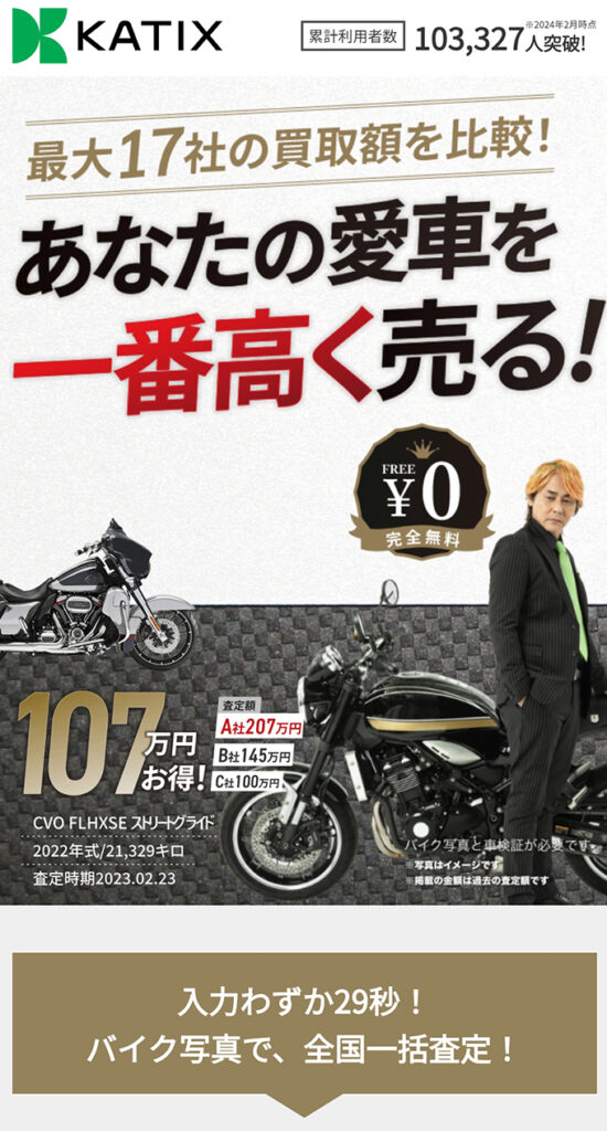 カチエックスはコンシェルジュ型のバイク一括査定サービスです。