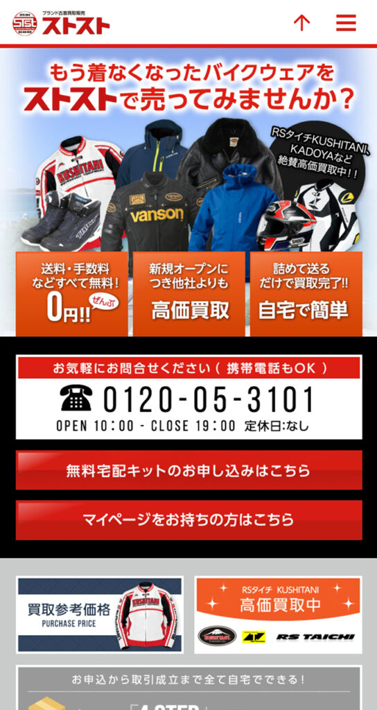 特色は何といっても宅配買取がメインでかさばるバイク用品やゴルフバッグなどの大きなサイズの箱ももちろんありますし、また返送時の送料も一切かからないという安心設定です。